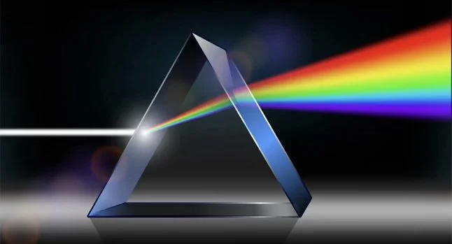 Just like the single white light is diffused into the seven colors of the spectrum by the prism, those seven colors unite back into a single white light when directed towards the saints.